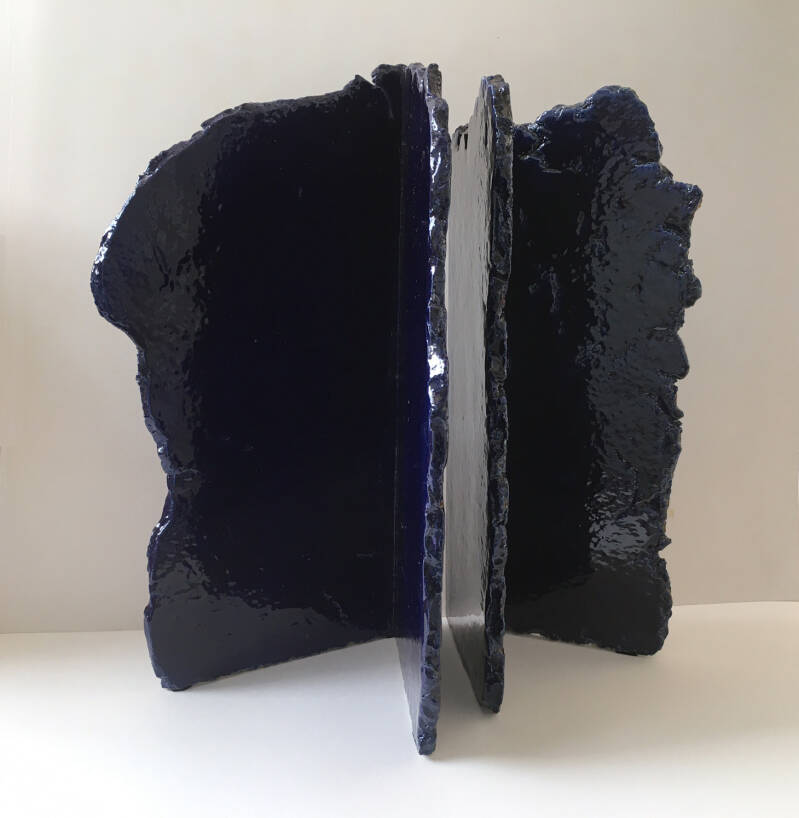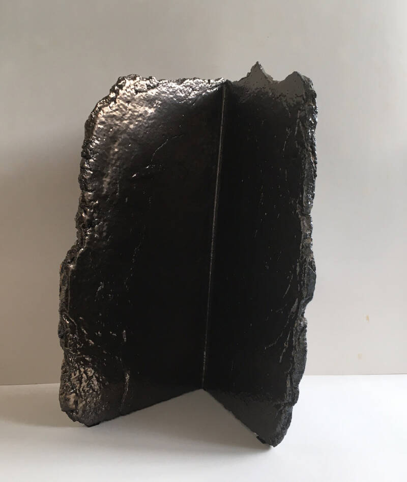 De objecten zijn gevouwen van gerecyclede stalen platen. Een materiaal dat gebruikt is in o.a.de scheepsbouw.
